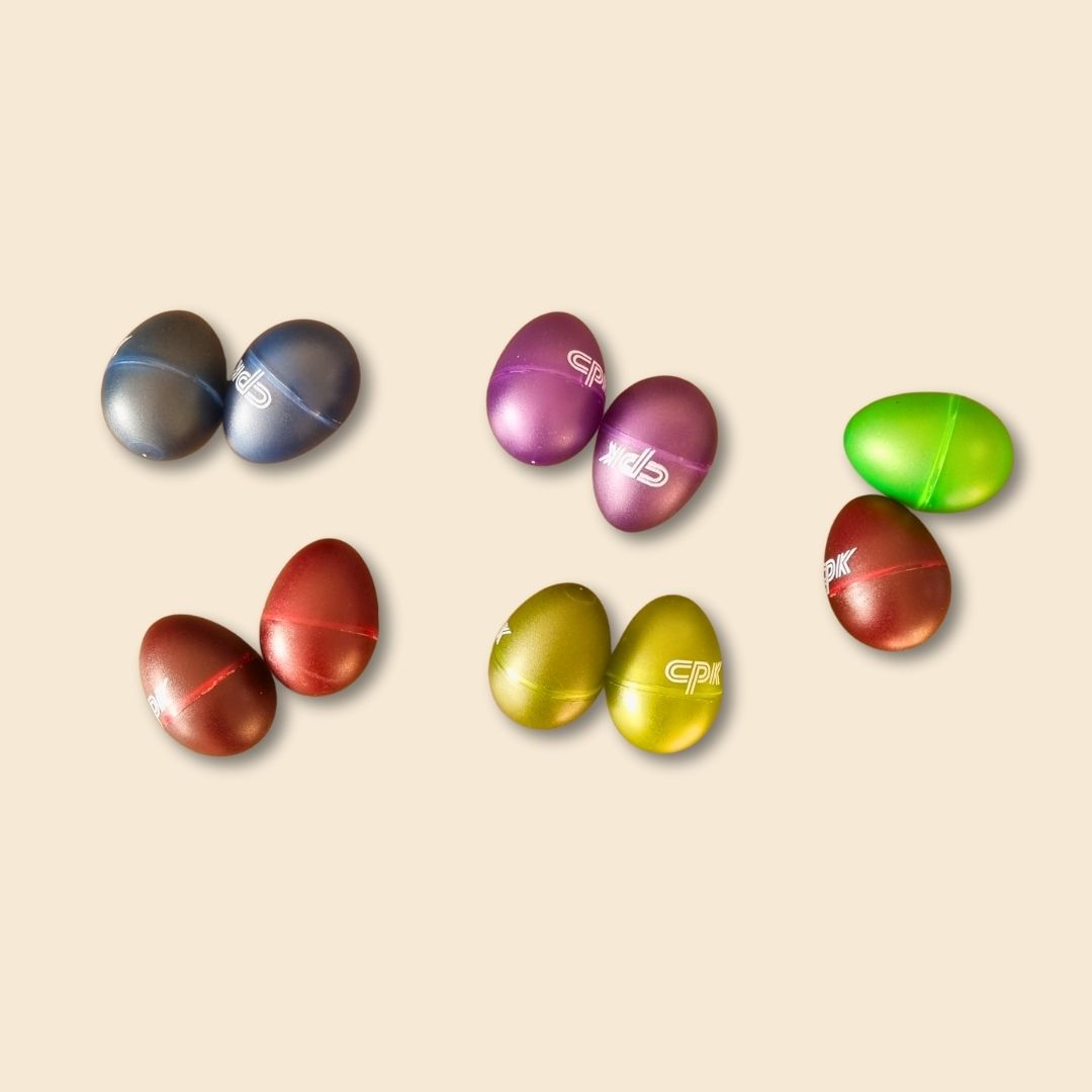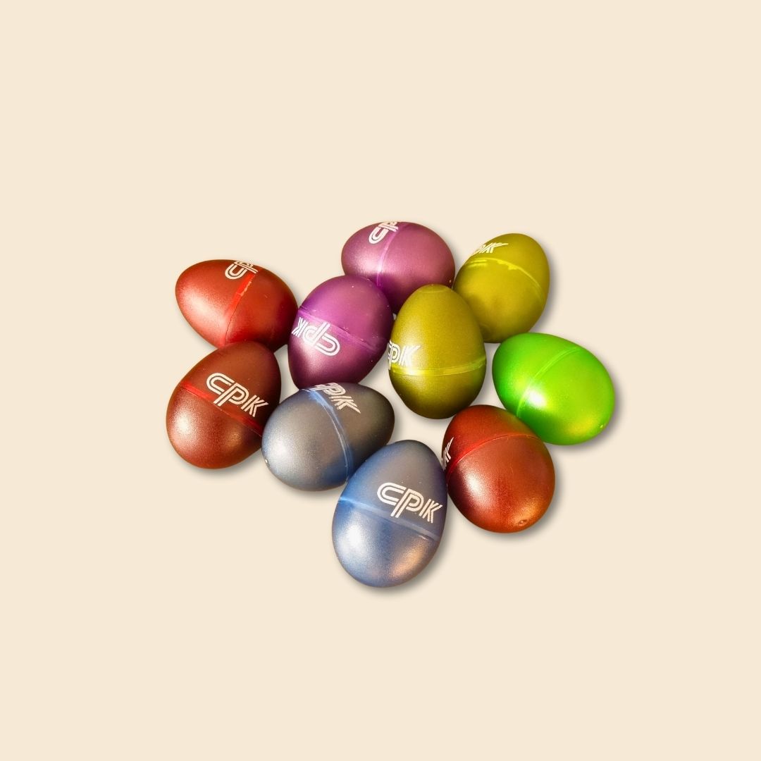 • Egg Shakers (set of 2) – CPK plastic egg shakers with metal beads inside - you'll get two eggs, colours selected at random.